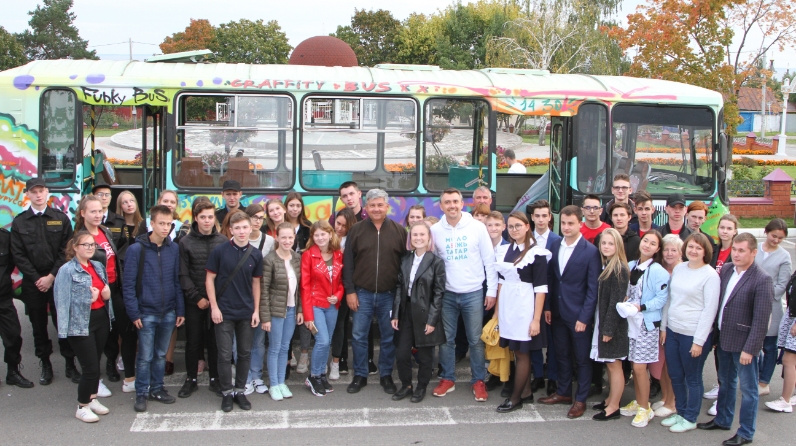 Встреча завершилась нанесением надписи на «Автобус 14..30» с названием города Лаишево.