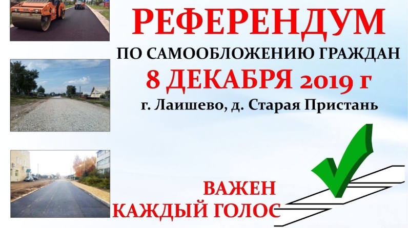 В этом году референдум по введению программы самообложения граждан пройдёт только в городе Лаишево (д.Старая Пристань), в остальных населённых пунктах вопрос будет решаться на сходах граждан, где жители определят своё участие в программе и на что потратят собранные средства.