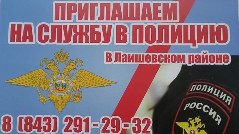 На службу в отдел МВД России по Лаишевскому району требуются мужчины в возрасте до 35 лет, остслужившие в вооруженных силах и имеющие образование не ниже среднего. Тел. 2912-932; 884378-2-55-41.