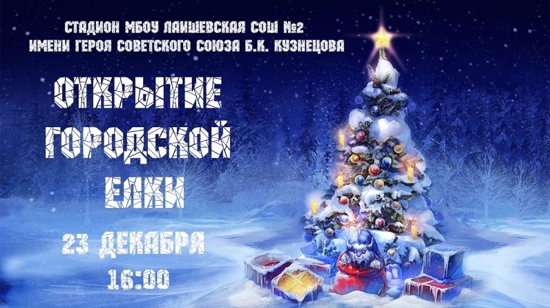 Приглашаем всех на открытие городской елки, которое состоится 23 декабря в 16:00 на стадионе второй школы имени Героя Советского Союза Б.К.Кузнецова. Вас ждут конкурсы, викторины, праздничный концерт артистов Лаишевского района и приглашённых гостей, выступление Деда Мороза со Снегурочкой, салют и многое другое!