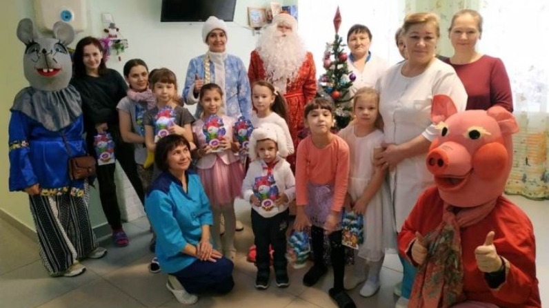 Тех, кто по состоянию здоровья не смог присоединиться к общему веселью, новогодние сказочные персонажи поздравили лично – пришли к ним в палату.