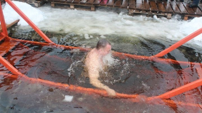 Трижды перекрестившись, они спускались в прорубь и с головой окунались в ледяную реку.