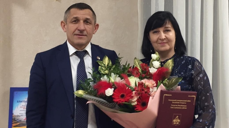 Ее поздравил и поблагодарил за плодотворный труд Руководитель района Ильдус Зарипов.