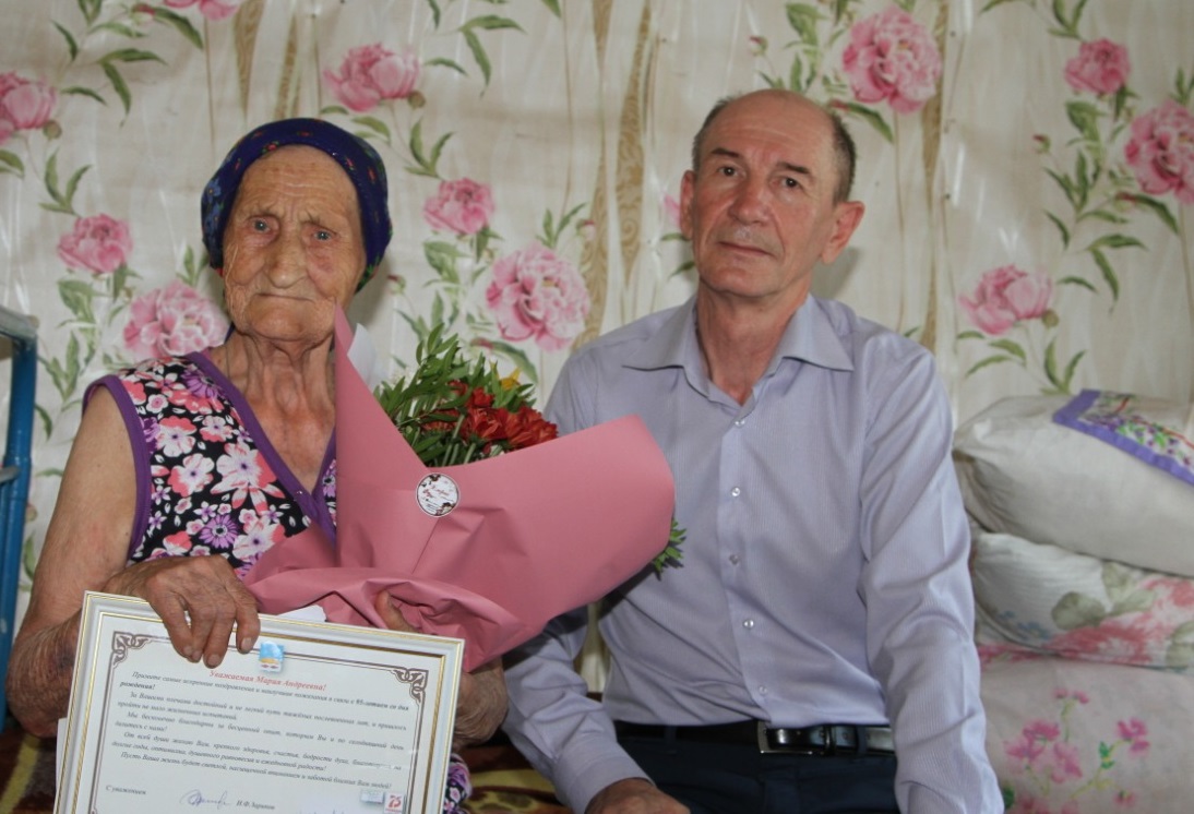 «Дорогая Мария Андреевна! От всей души искренни поздравлю Вас с этим важным событием в вашей жизни! Для каждого жителя нашего района Вы являетесь живым олицетворением целой эпохи развития нашей страны. За Вашими плечами остались трудные годы, богатые на различные события, которые играли решающую роль в истории нашего государство. Мы благодарны за тот неоценимый труд и личный вклад, который Вы внесли во благо нас, будущего поколения.