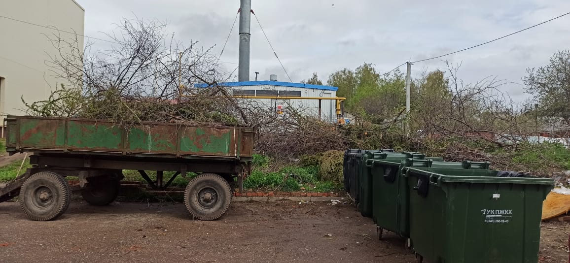 Сегодня сотрудники ДШИ и МУП(Лаишево) вышли на субботник. Навалы из вырубленных деревьев, выпиленных кустарников и разлетевшегося мусора заполонили контейнерную площадку.