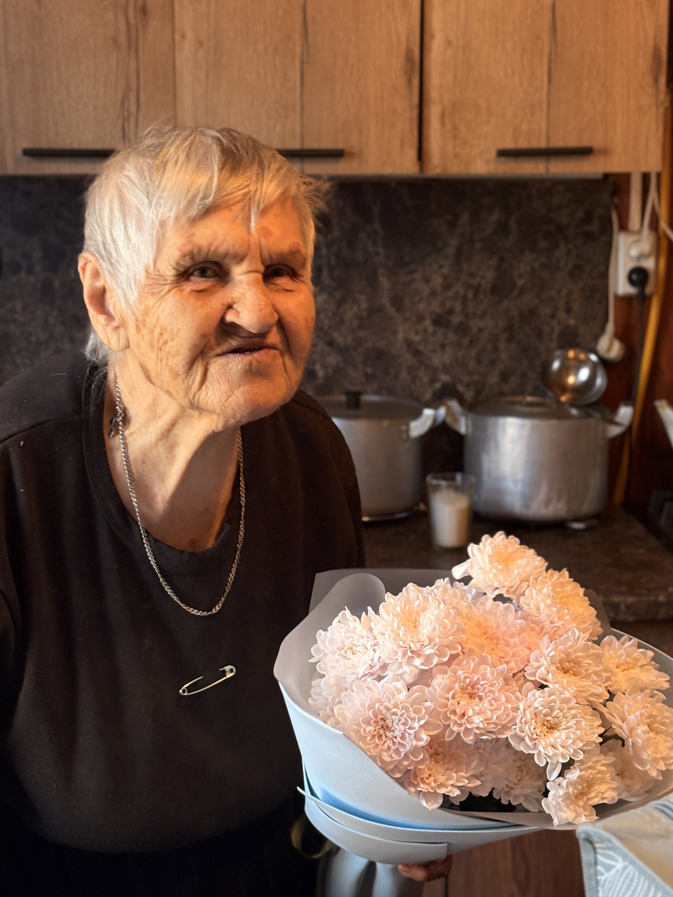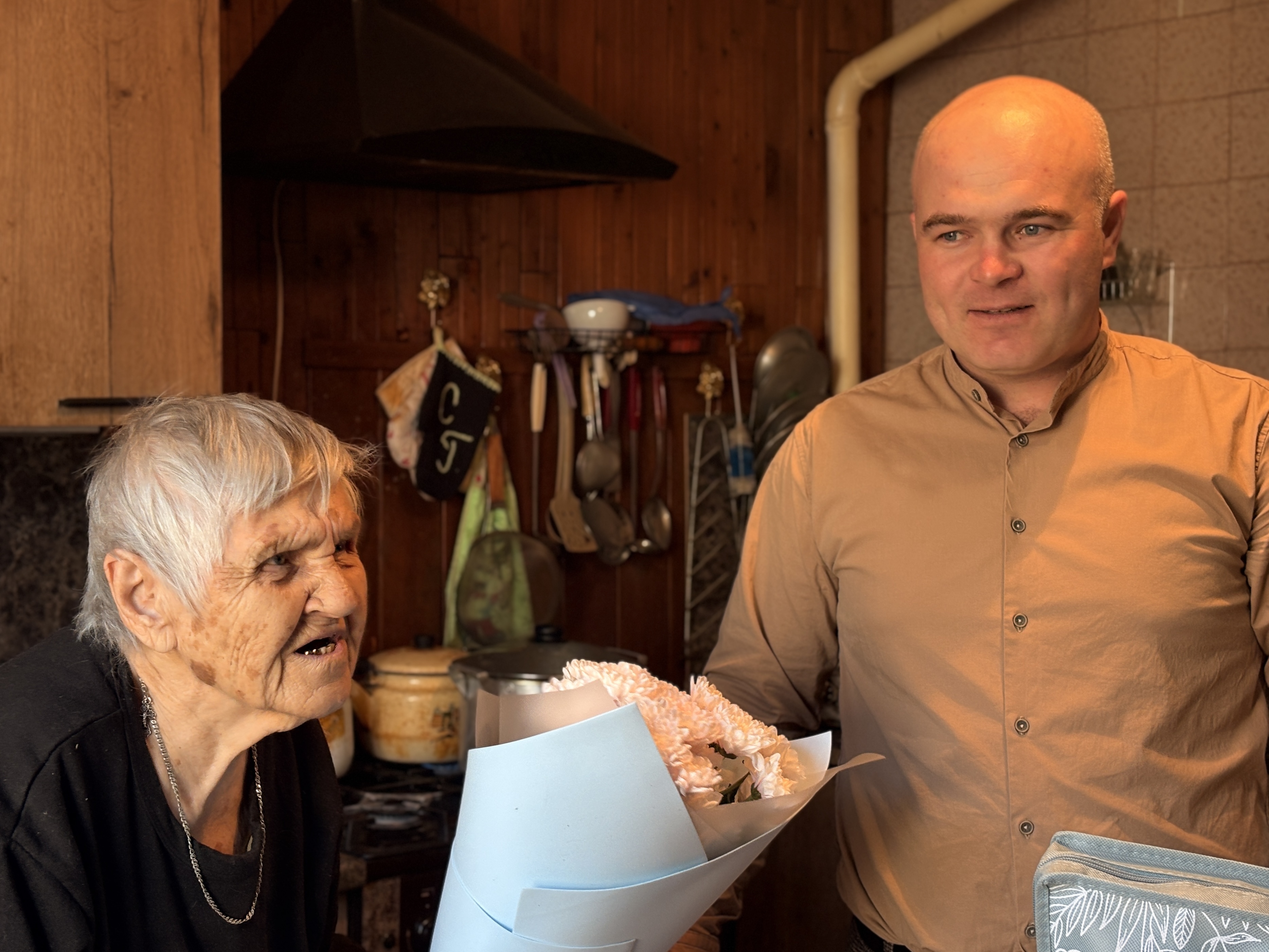 Гости поздравили Валентину Леонтьевну Международным днем освобождения узников нацистских концлагерей, который отмечается 11 апреля. Они пожелали ей здоровья, внимания близких и мирного неба над головой.