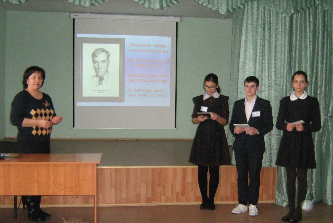 Тема войны занимает особое место в творчестве писателей и поэтов. Доказательством этому послужил классный час, проведенный учителем русского языка и литературы МБОУ "Именьковская средняя общеобразовательная школа" Габдуллиной Р. Н. на тему: "Отечественная война в творчестве Б. Пастернака. Ученики пополнили свои знания по биографии и творчеству писателя. Прослушали стихи и переводы.