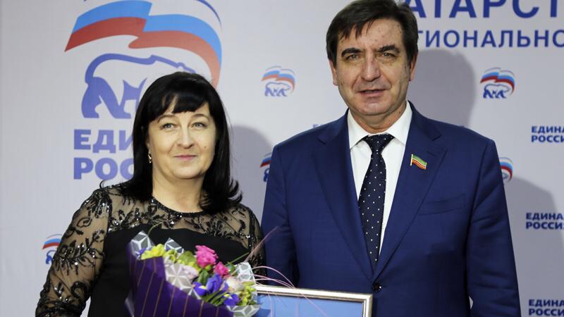 Лаеш районы башлыгы урынбасары Татьяна Борһановага бүләкне ТР Дәүләт Советы рәисе урынбасары Юрий Камалтынов тапшырды.