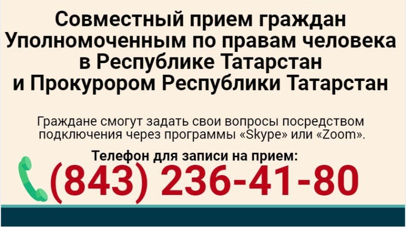Моның өчен (843) 236-41-80 телефоны буенча кабул итүгә алдан язылу кирәк.