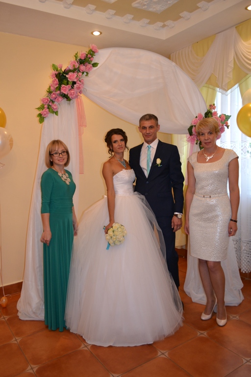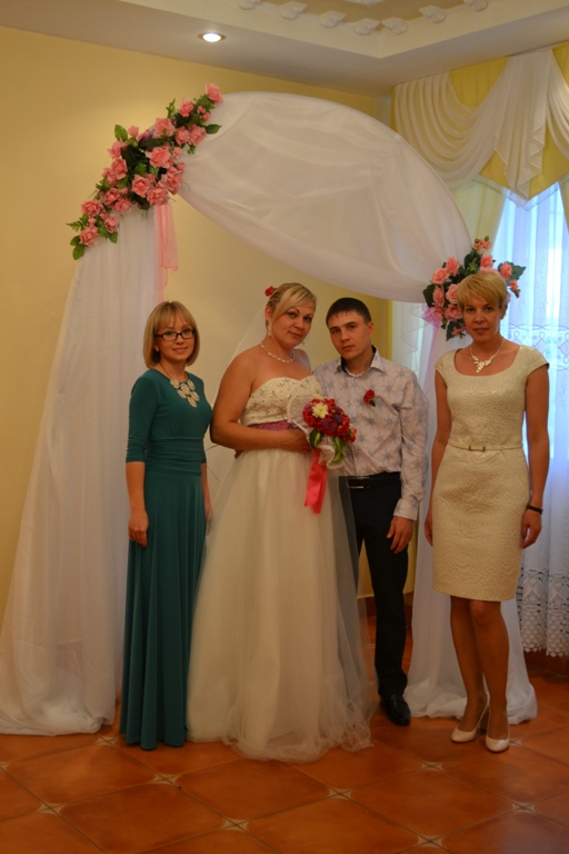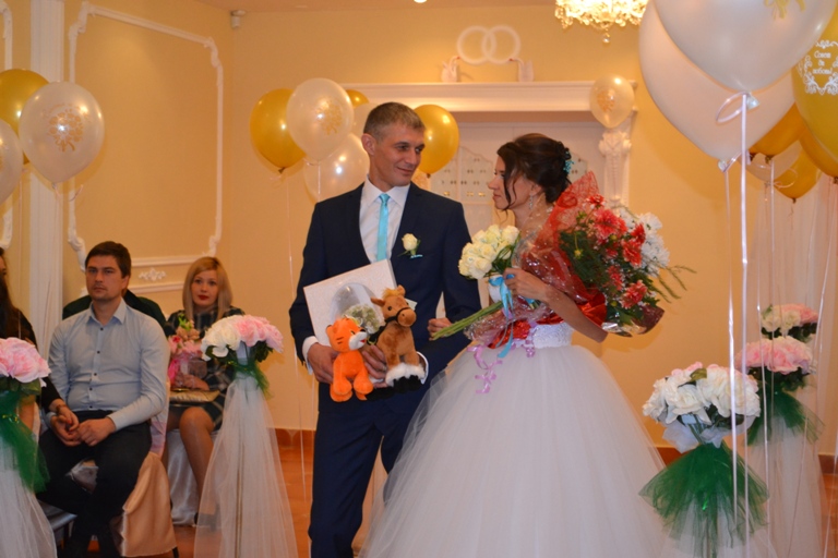 ЗАГС хезмәткәрләре бу яшь гаиләләрне тәбрикләп аларга гаилә бәхете, тыныч матур тормыш теләп истәлекле бүләкләр тапшырдылар.